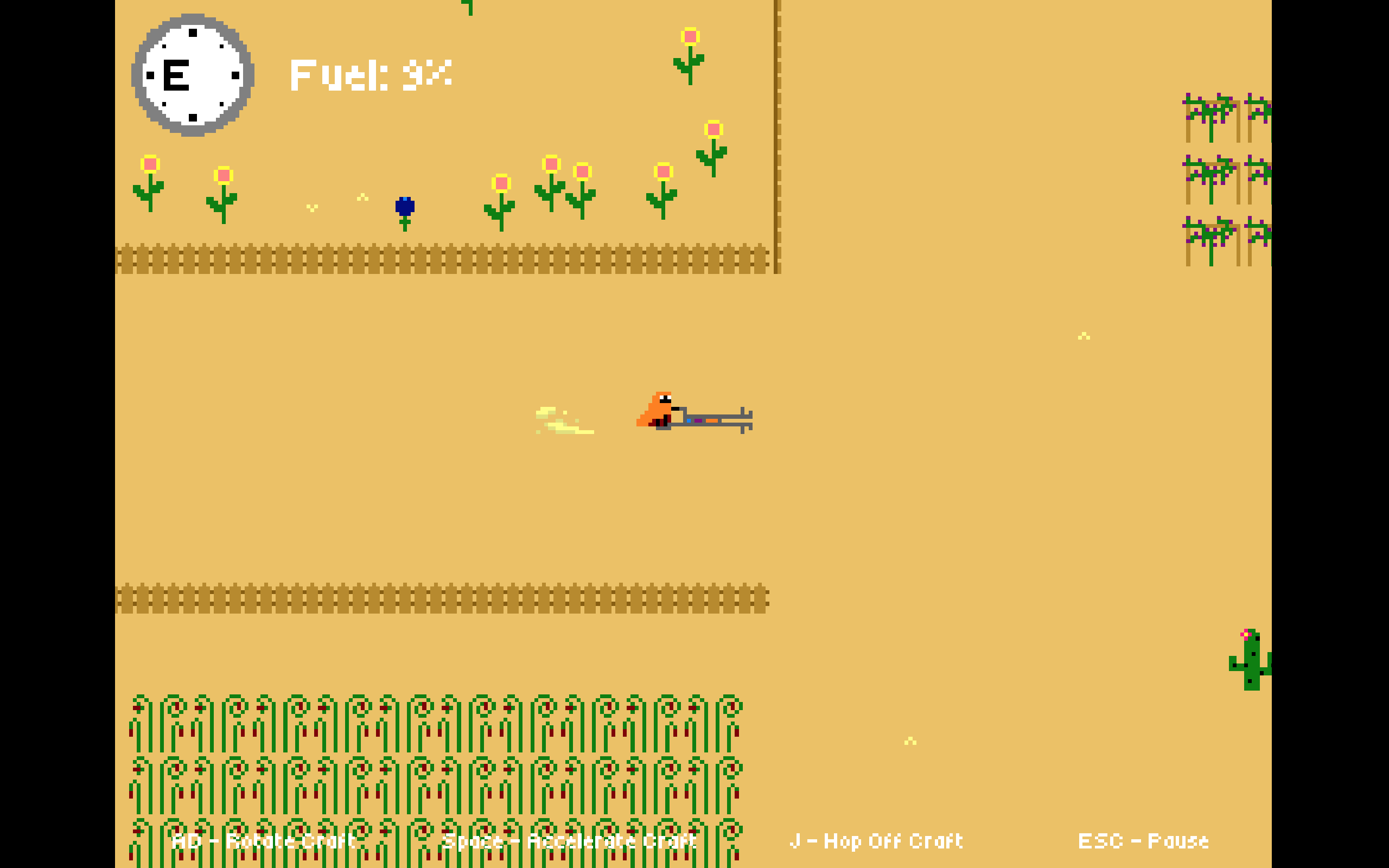 - Gather materials from around the desert to trade for upgrades to your hovercraft